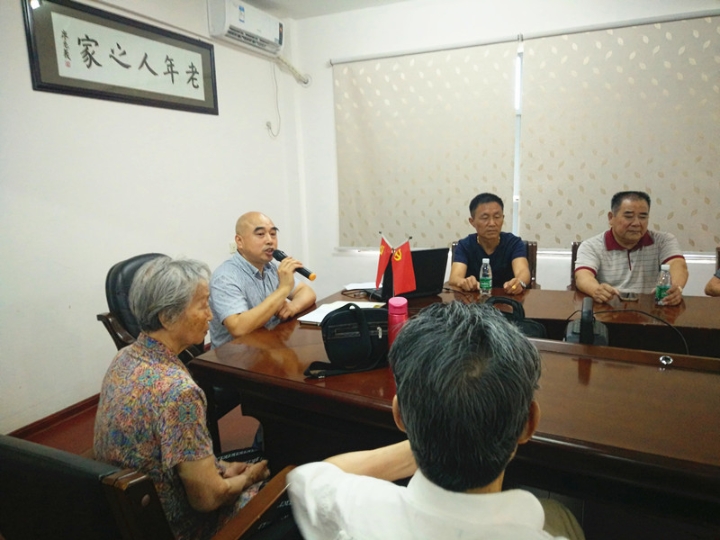 在慷慨激昂的宣誓之后,南坪岗乡敬老院党支部书记吴光清同志首先感谢了院内的老党员们虽已退休,但依然发光发热,与全体党员讲述了党的相关光辉历程,分享了近年来党的先进性、优越性事件,让大家感受到了祖国的强盛、党的强大。接着还专为老党们总结了“三个忘记”、“四个自己”、“五个快”、“六个不要”、“七个应当”、“八个得”、“九个老”、“十个忌”,帮助老党员们发挥余热谱新篇。